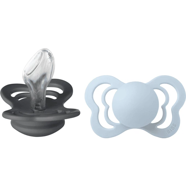 BIBS® Schnuller Couture Iron & Baby Blue Silikon 6-18 Monate, 2 Stk.