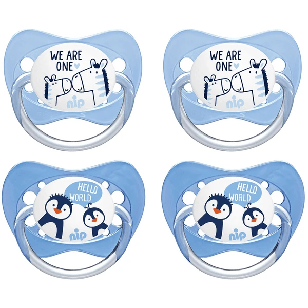 nip® Schnuller Family Gr. 1 Latex Pinguin und Zebra 4 Stück